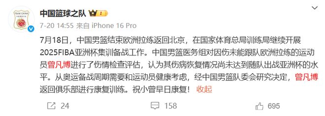 恭喜!NBL球隊有意曾凡博!中國男籃等回首發(fā)四號位