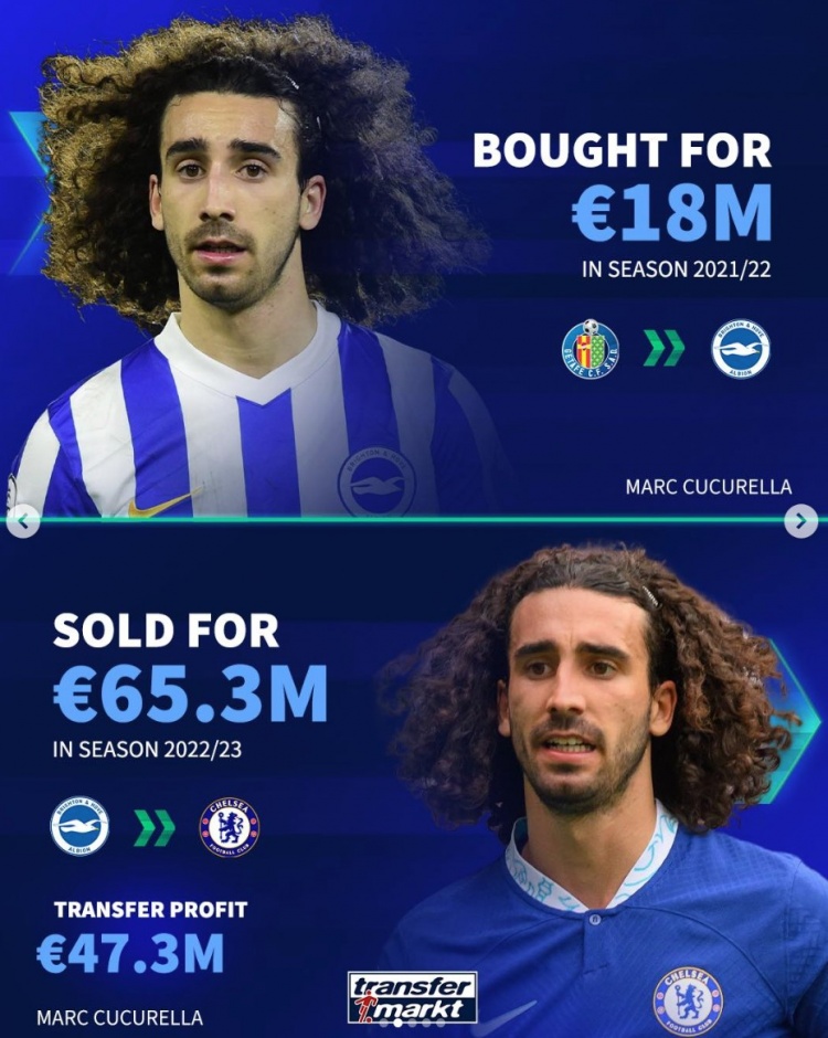 3月3日訊 《轉會(huì )市場(chǎng)》統計了布萊頓近年的5筆低買(mǎi)高賣(mài)轉會(huì )操作,共計凈賺超過(guò)2億歐元。