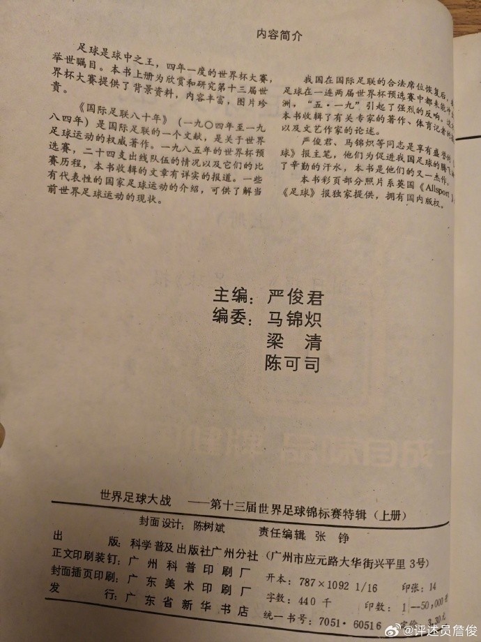 父親說(shuō),這些小薄紙片挺“解渴”的。那里肯定也有嚴俊君老總的“耕耘之作”。我開(kāi)始工作后,和“足球報”很多同行成為好友,可惜那時(shí)嚴總已經(jīng)退居二線(xiàn),無(wú)緣相見(jiàn)。今晚得知他老人家駕鶴西去,心中惆悵。謝謝您!曾經(jīng)帶我們這些球迷去“看世界”……