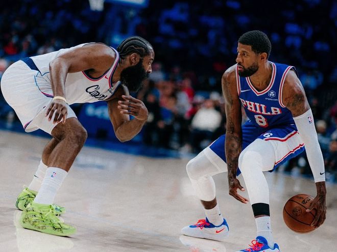 為什么?得益于馬克西本賽季超級爆發(fā)(場(chǎng)均33分4.6籃板7.8助攻1.6搶斷),76人在競爭激烈的東部(10支球隊勝率超過(guò)5成),基本保持在前八名。其實(shí)說(shuō)句難聽(tīng)話(huà),76人開(kāi)局一度打出數一數二的表現,恩比德出場(chǎng)時(shí)間限制+負荷管理進(jìn)進(jìn)出出,把球隊整體效率拖下來(lái)了,年輕隊友要給他填坑。喬治復出后,他在場(chǎng)時(shí)球隊百回合輸對手2.2分;他不在場(chǎng)時(shí)球隊百回合贏(yíng)對手1.4分,于是On-Off值是-3.6。關(guān)鍵是喬治在場(chǎng)時(shí),球隊進(jìn)攻效率差值是-10.7,簡(jiǎn)單來(lái)說(shuō),進(jìn)攻已經(jīng)到了聯(lián)盟墊底水平!