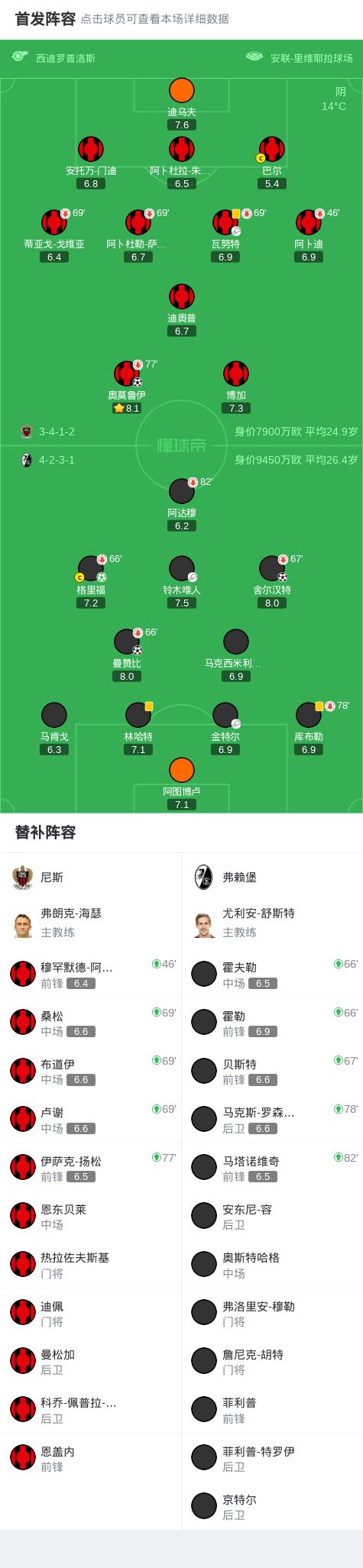 第25分鐘,尼斯球員瓦努特助攻奧莫魯伊打入一球。