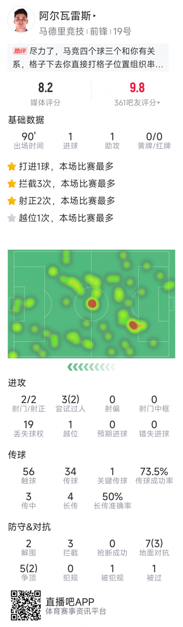 2月26日訊 在本輪國王杯,馬競4-4戰平巴薩。本場(chǎng)比賽阿爾瓦雷斯傳射建功,以下為他在本場(chǎng)數據: