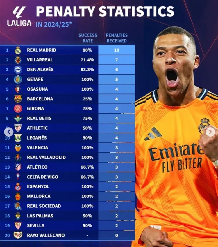 2月11日訊 《轉會(huì )市場(chǎng)》統計了本賽季五大聯(lián)賽獲得點(diǎn)球次數情況,皇馬10次最多,狼隊和巴列卡諾至今為0。